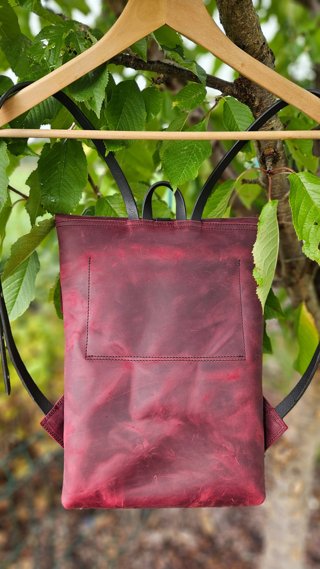 Batoh z italské usně v úpravě crazy horse, kůže je provoskovaná,při promnutí mění efekty tmavý/světlý odstin. Uvnitř 1 kapsa na mob 20x15.