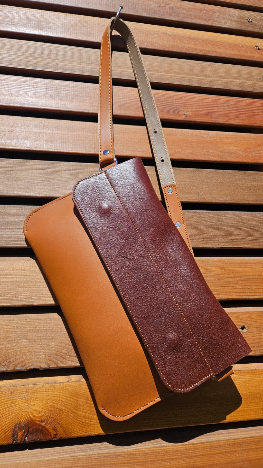 Kožená kabelka, italská kůže. Tělo pevné, klopa jemná hovězina.