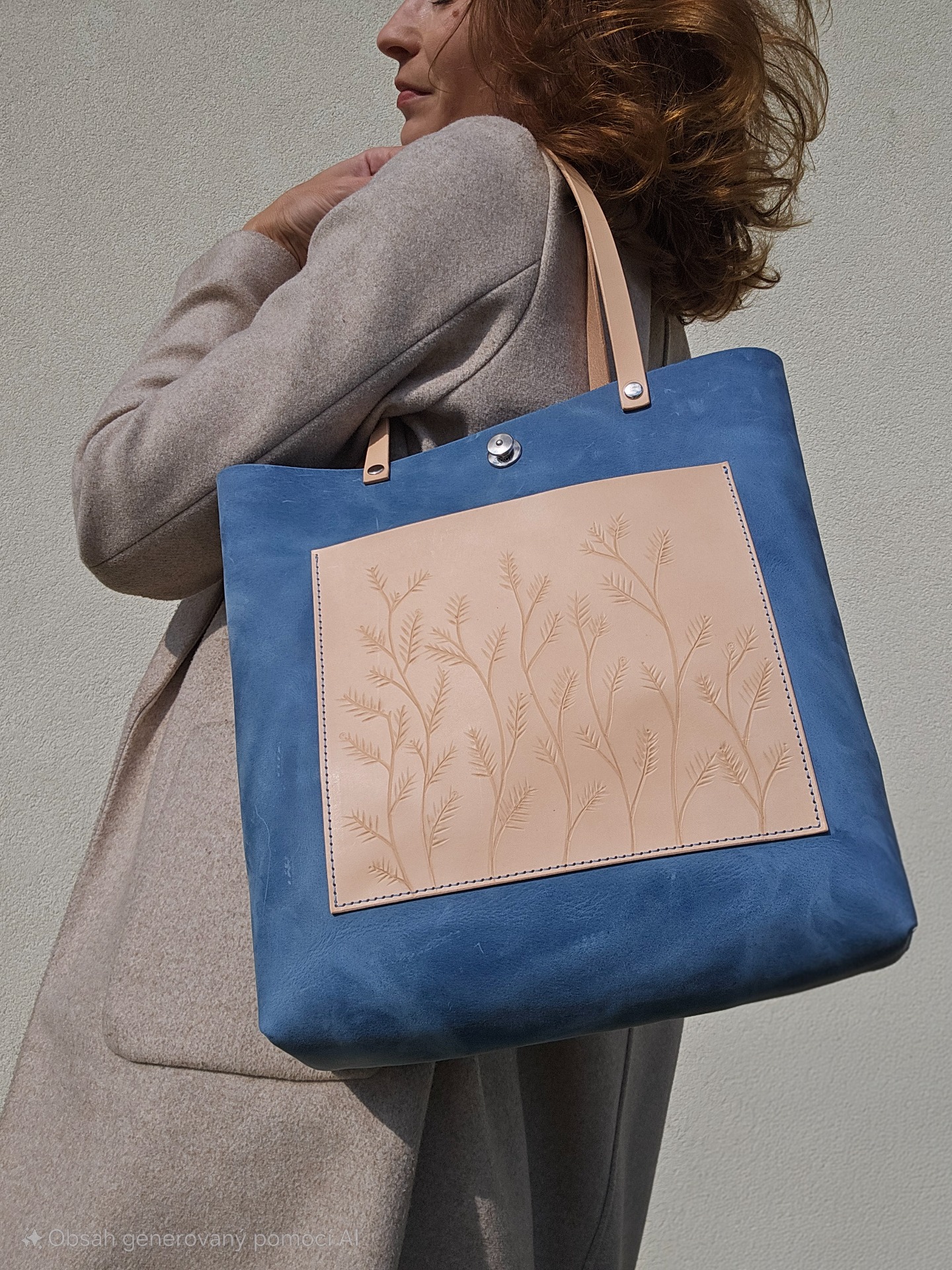 Uši a přední kapsa je přírodní hlazenice, zdobená raznicemi.