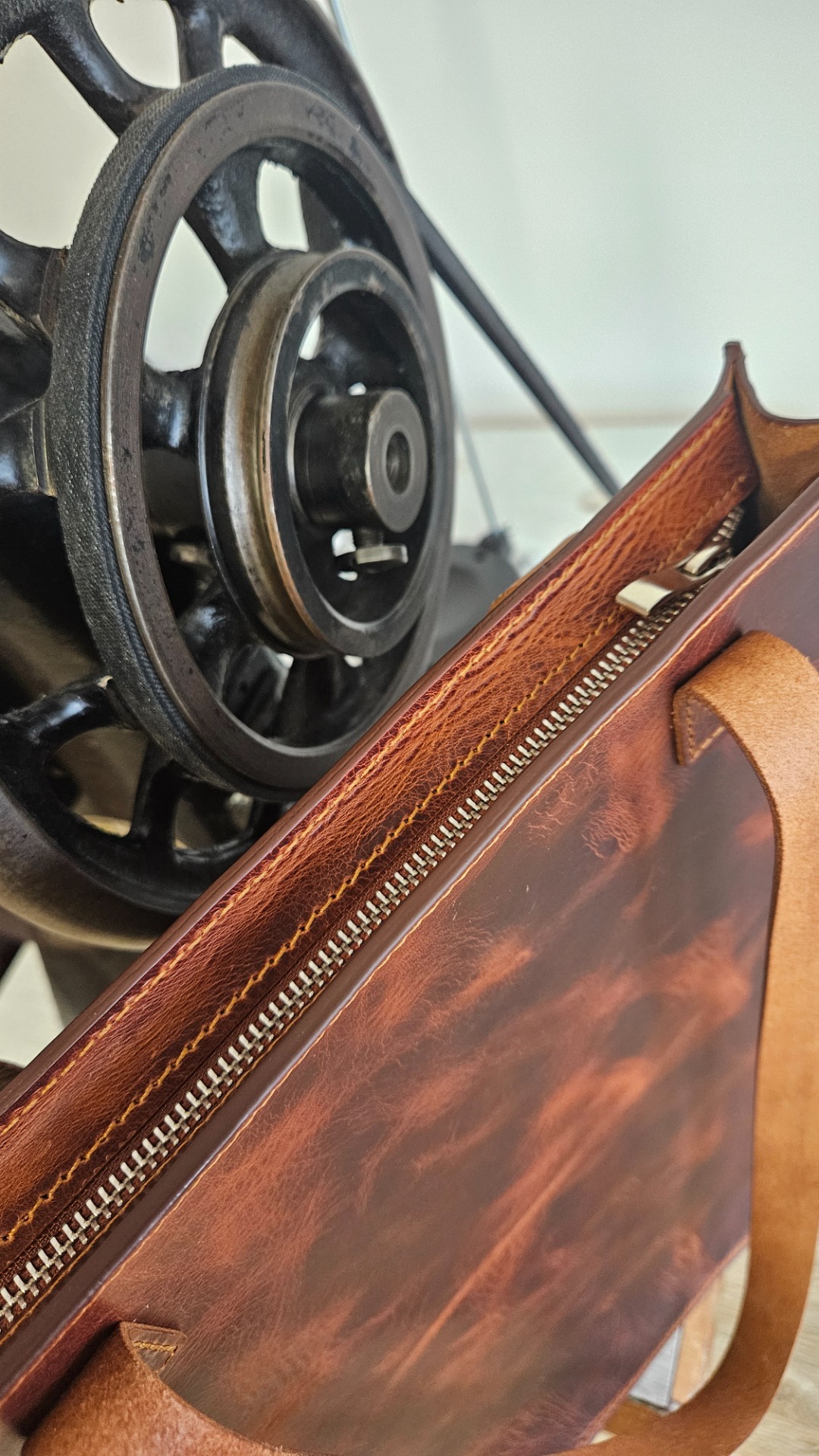 Kožená brašna z provoskované italské usně WAX, krásně mění efekty tmavý/ světlý odstín.