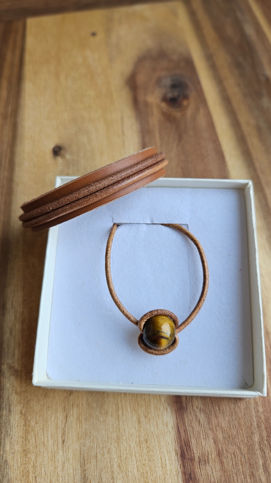Minerální set býčí oko, náramek kožený a náhrdelník.
