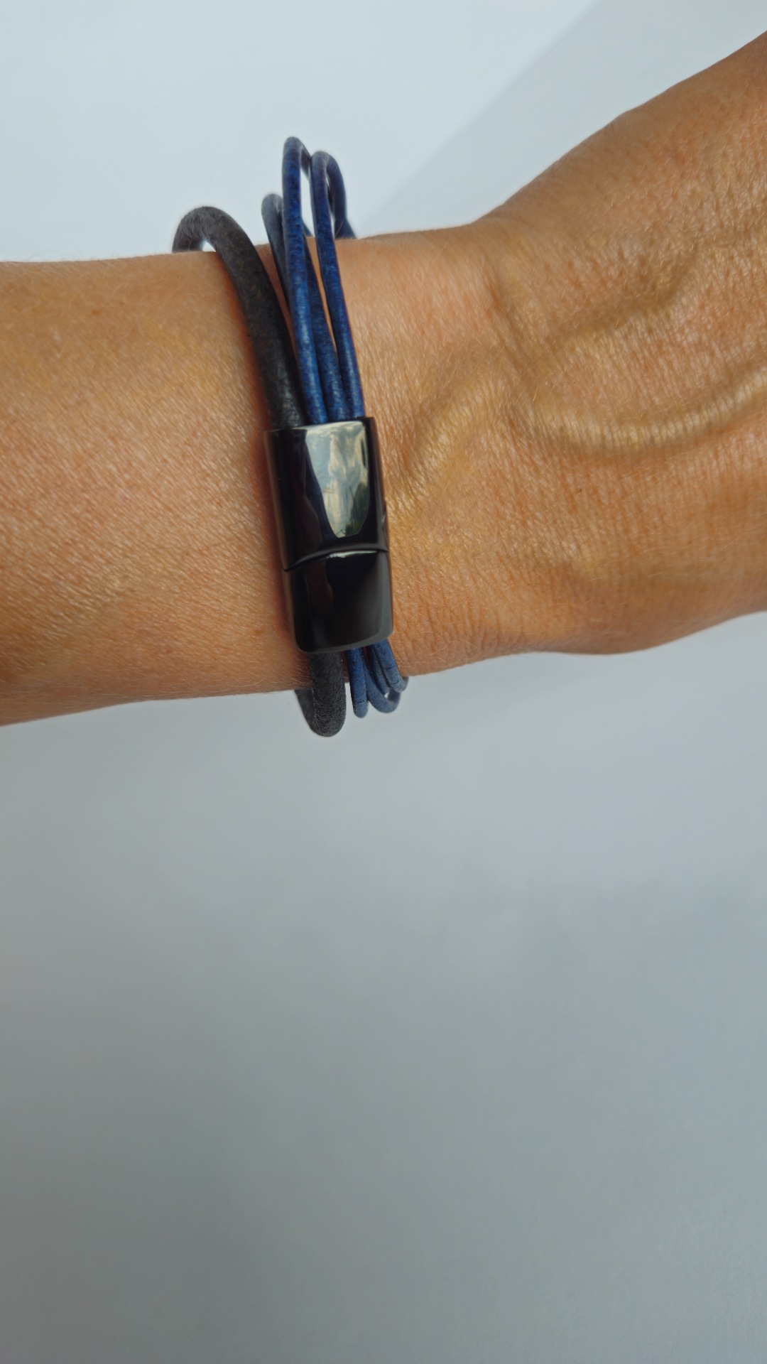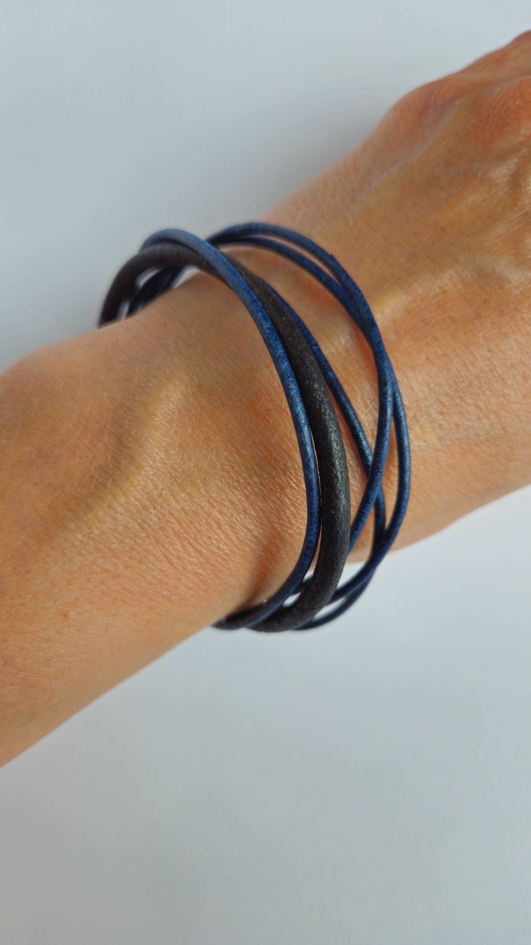 Kožený náramek, vhodné i pro pány, kůže černá a modrá, černé zapínání.
