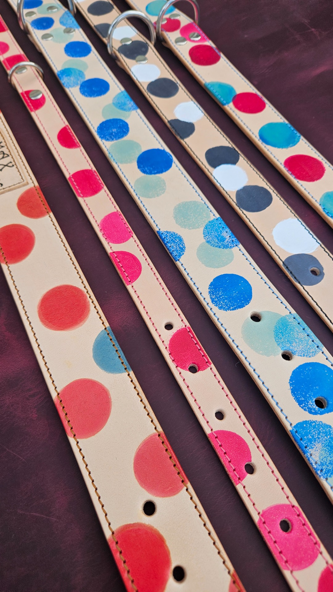 Italská kůže, vyberte si barvu puntíků, barvu obšití, napište mi obvod krku Vašeho pejska a dám se do práce! :-)