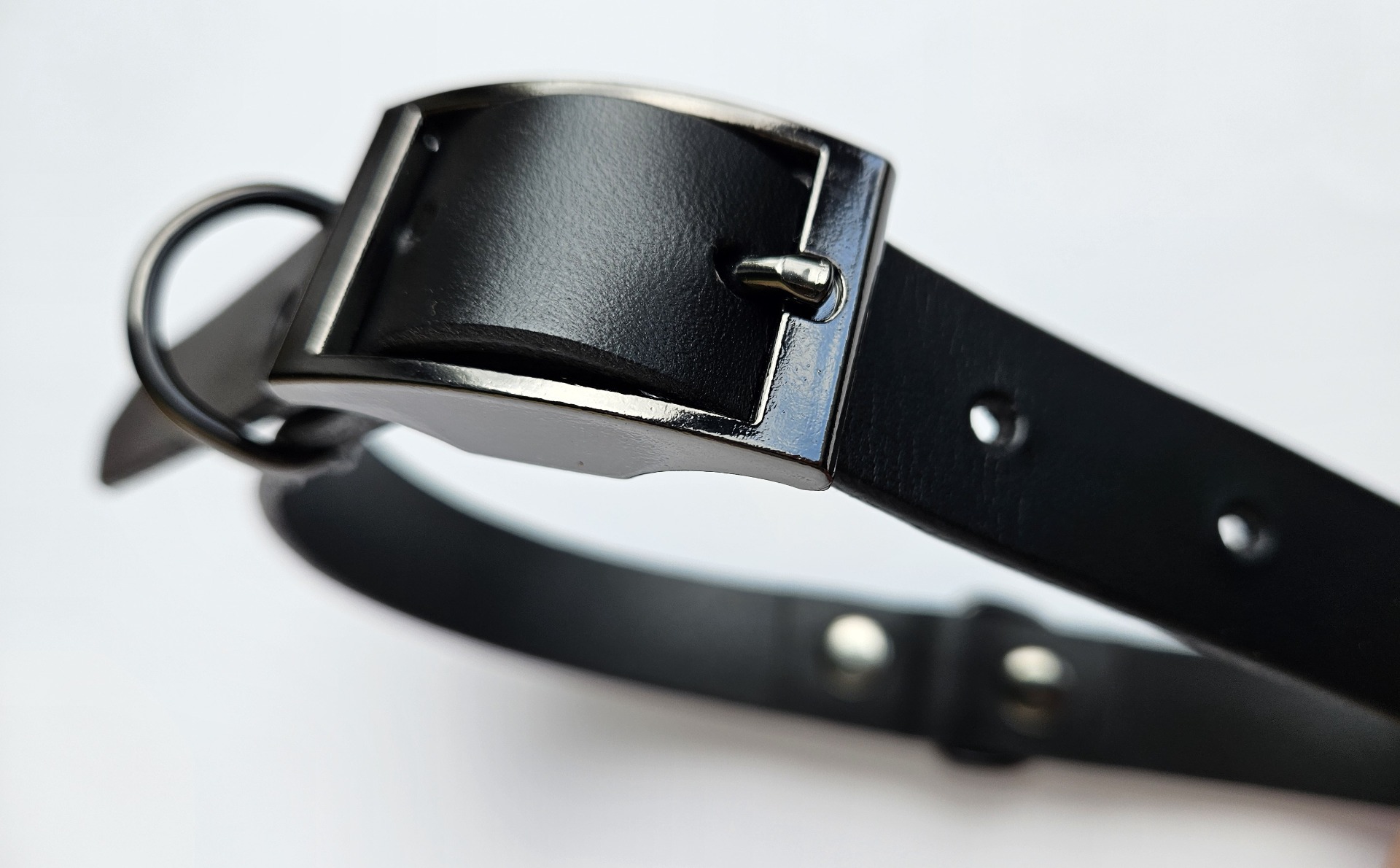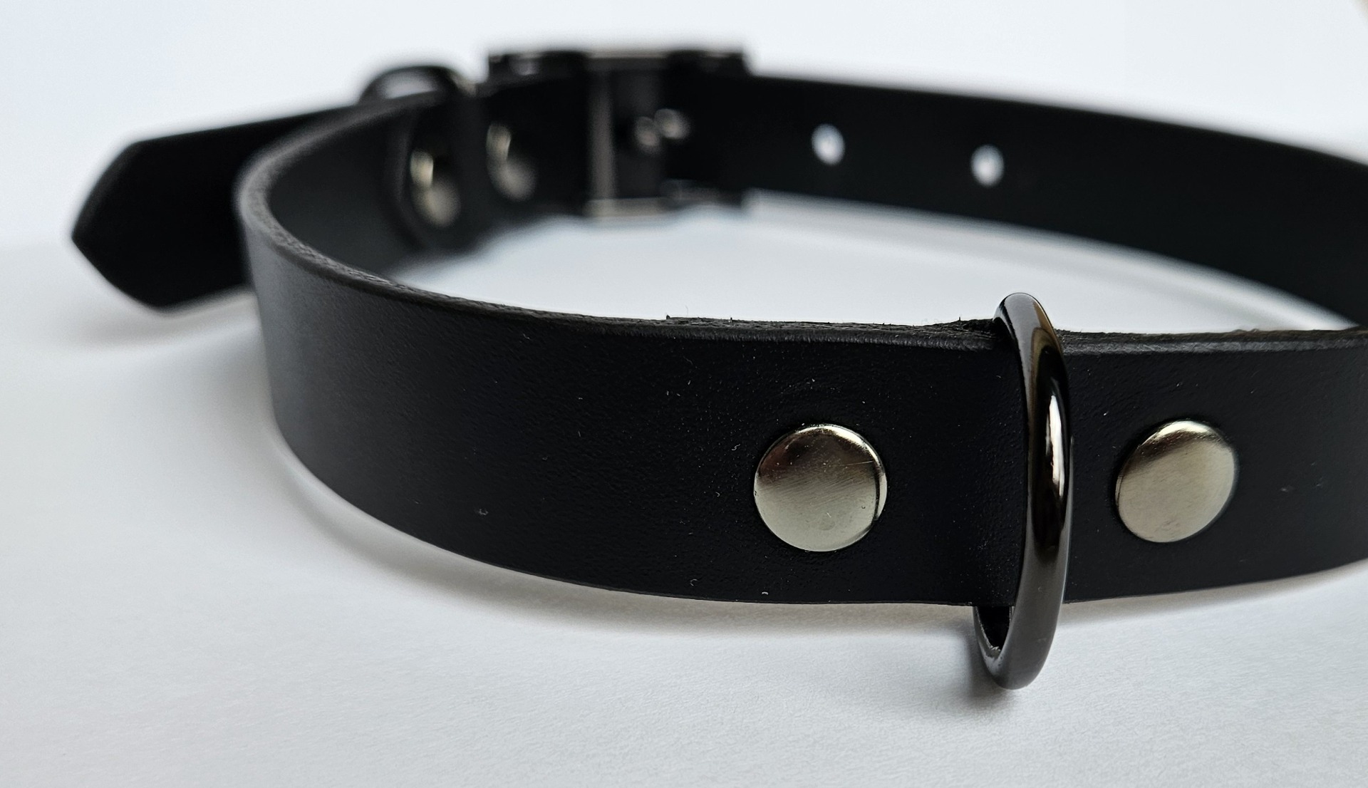 Obojek pro psy vel S, černá sytá useň - krupon pyrex tl. 2mm - Itálie, šedé kování. 5ks dírek pro pohodlné zapínání.