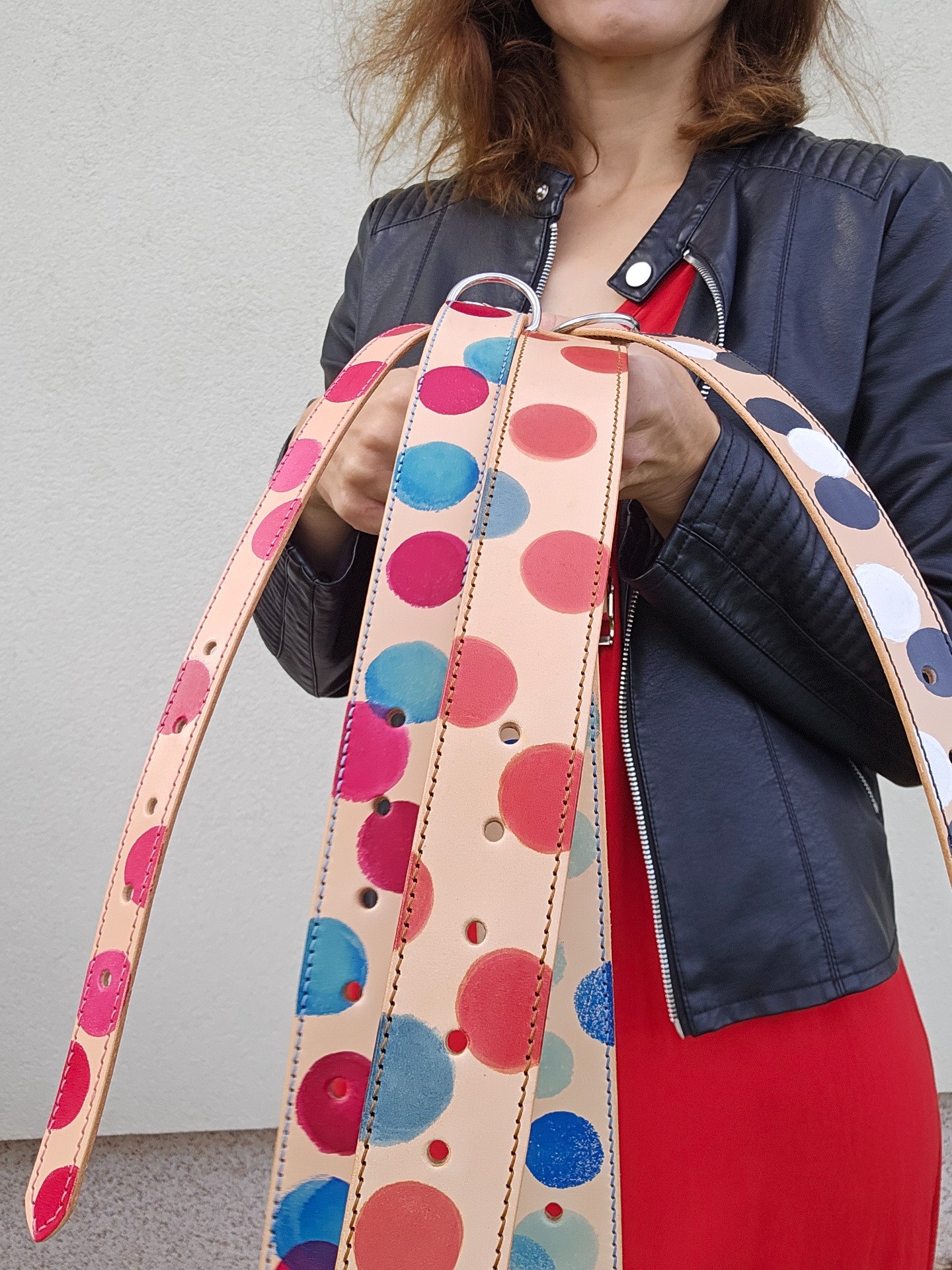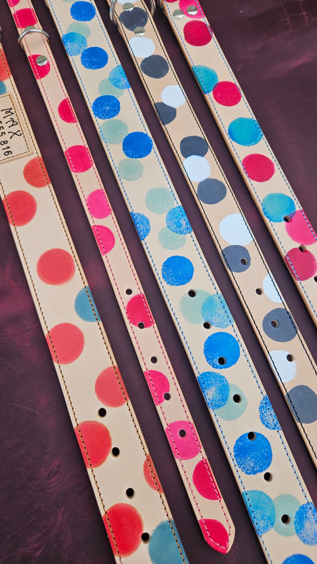 Italská kůže, vyberte si barvu puntíků, barvu obšití, napište mi obvod krku Vašeho pejska a dám se do práce! :-)