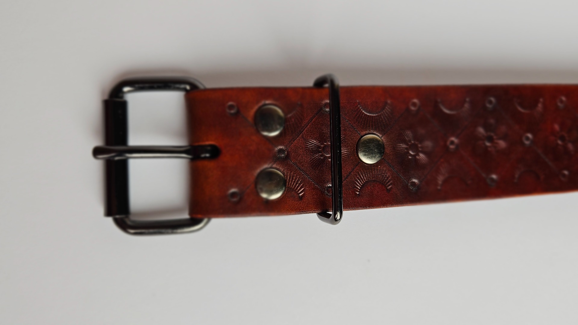 Obojek pro psy vel XL, barva tmavě hnědá, šedé kování. 5ks dírek pro pohodlné zapínání.