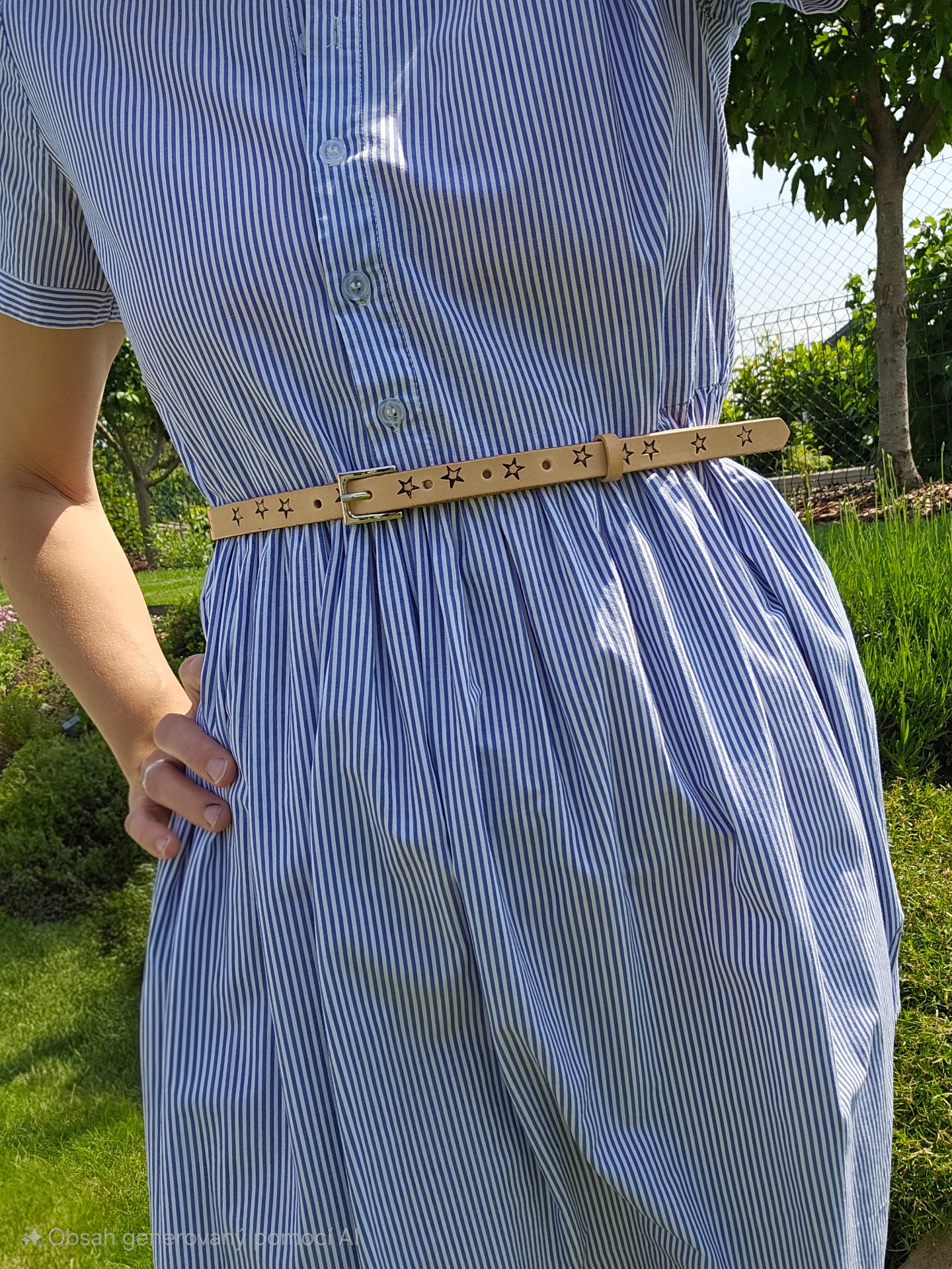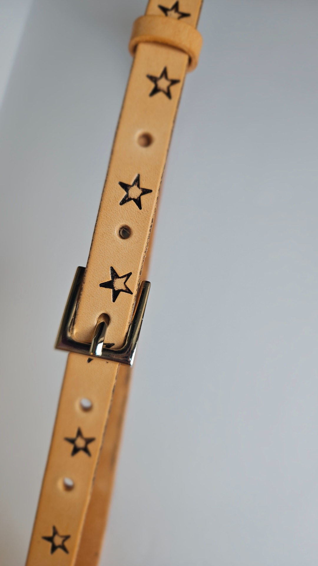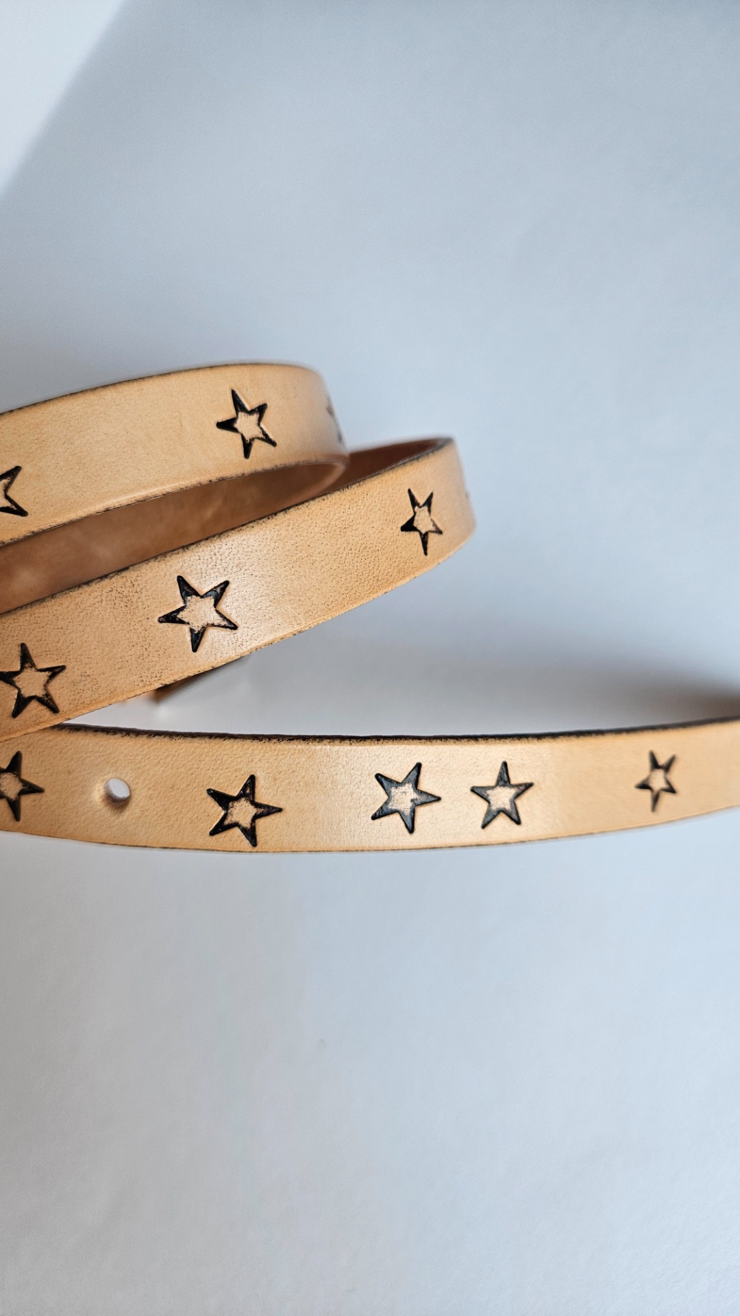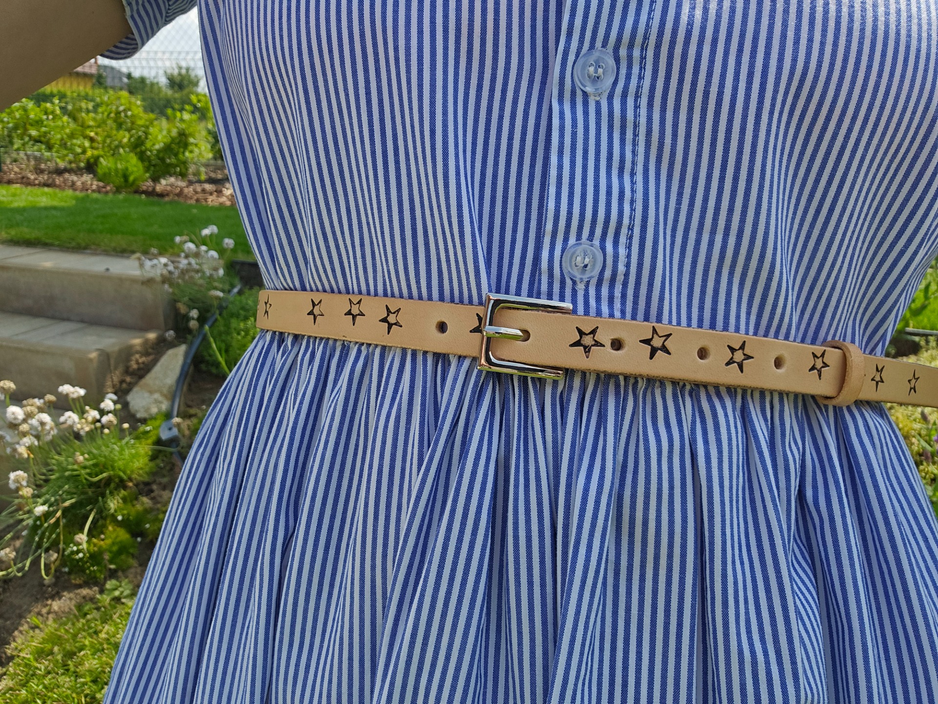 Kožený pásek Star je idealní pro oživení letních šatů. 5 dírek pro pohodlné nastavení, posuvné kožené poutko.