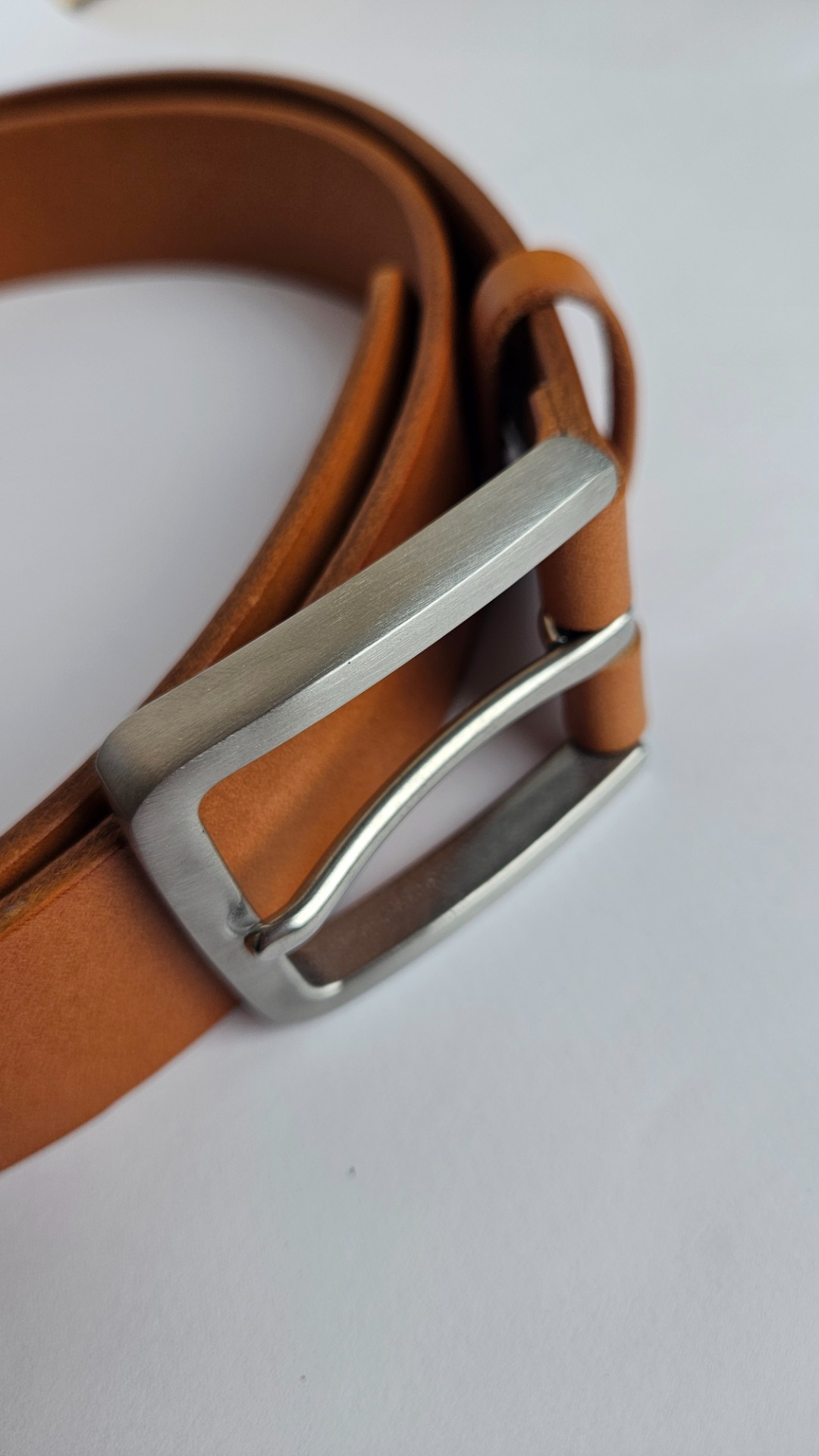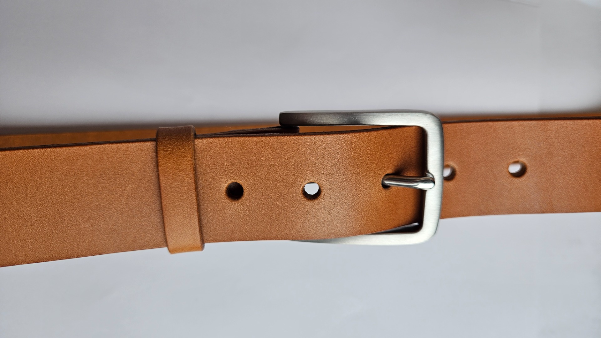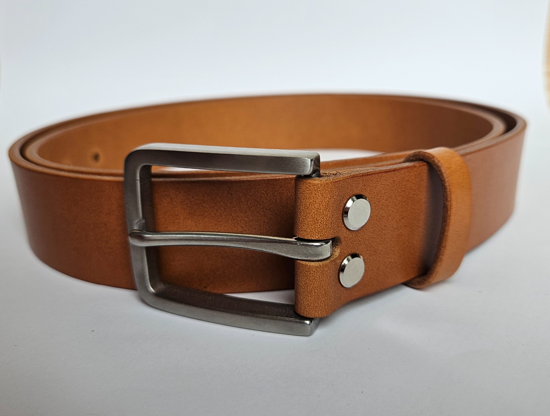 Ručně vyráběný opasek, 5 dírek na pohodlné zapínání. Opasek je vyroben z hovězí kůže "calvados", prémiová useň lehce válcovaná, která si ponechává tímto své skvělé vlastnosti. Pevnost a dlouhověkost jsou hlavní přednosti tohoto opasku.