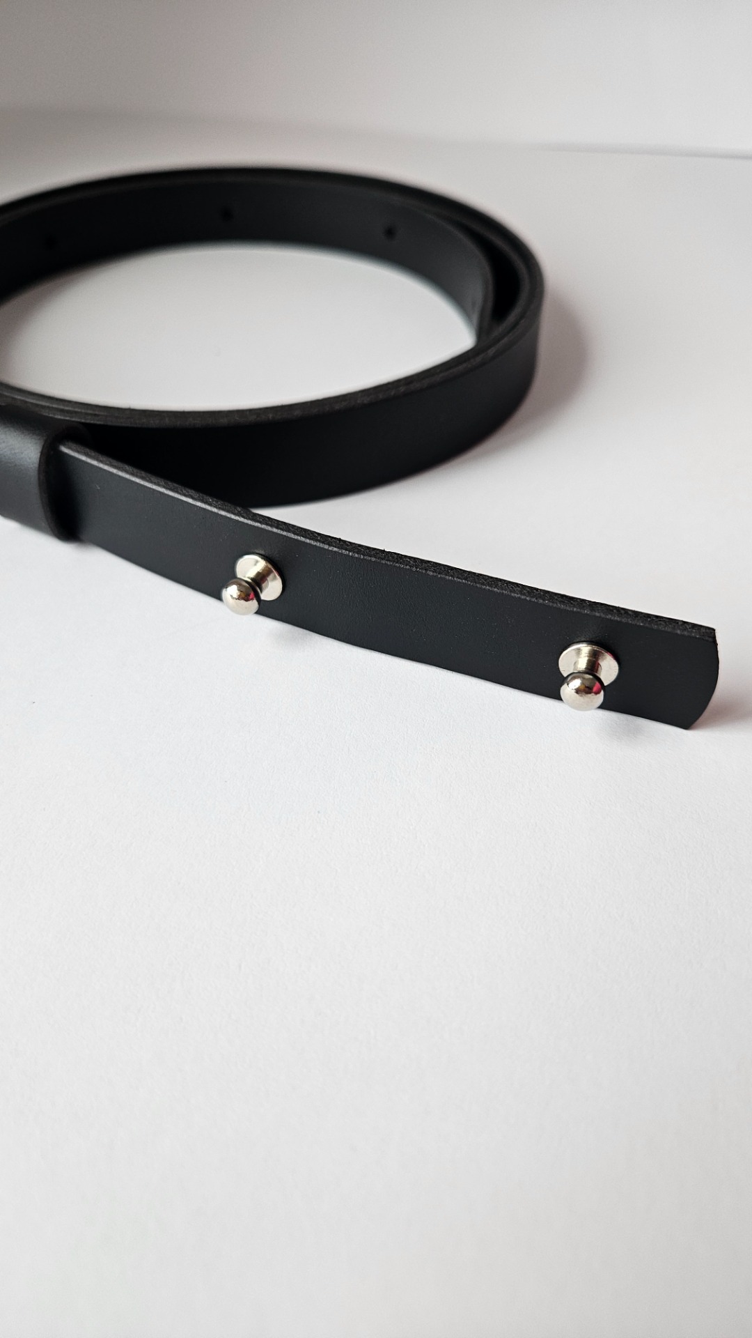Minimalistický opasek z italské usně na sedlářské knoflíky ve stříbrné barvě. Uni délka, pro jistotu mi uveďte obvod pasu do poznámky,vyrobím přesně pro Vás :-)